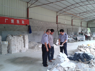 16日上午,专利权人到南阳局请求立案时反应,侵权人多次侵权,近期又生产、销售侵权产品,请求执法人员尽快立案采取行动,否则侵权产品将销往外地或出口,损失将难以挽回。鉴于该案属于反复侵权性质恶劣,对当地已造成不良影响,为了减少权利人的损失,最大限度保护专利权人合法权益,南阳局立即召集人马召开会议,局长葛均西主持会议,决定立即开展专项行动,联合公安打击恶意侵权行为。 16日上午11点,葛均西局长亲自带领专项行动执法人员迅速赶往南召县石门乡,到达涉案石材厂,执法人员现场对侵权场地进行勘察,对当事人进行宣传教育,并送达相关法律文书,经过执法人员耐心说服、讲解专利法,侵权人积极配合,并承若侵权产品不再生产,目前此案正在调处中。